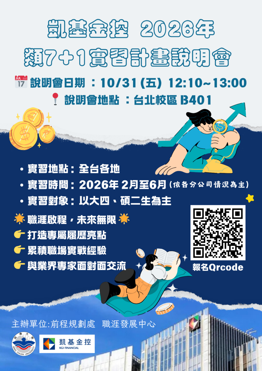 【前程規劃處活動宣傳】凱基金控2026年年類7+1實習計畫-10/31(五)說明會